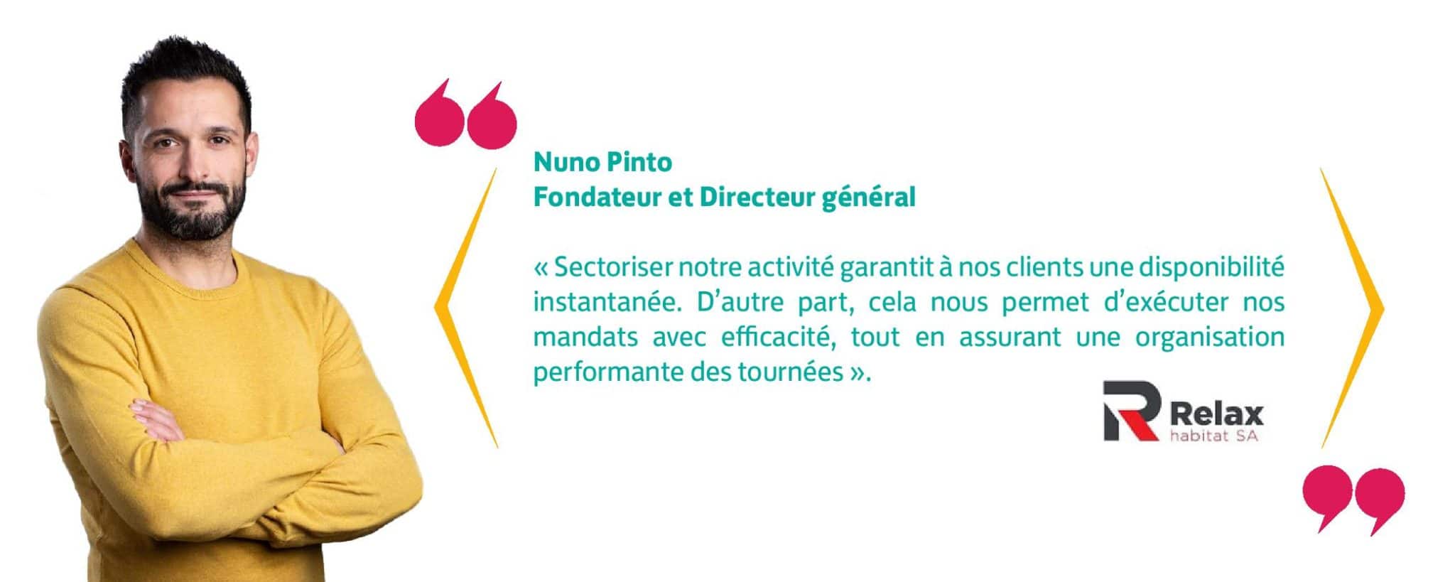 Lorsque nous demandons à Nuno Pinto, fondateur et directeur général de RELAX HABITAT, comment il perçoit le métier après plus de 10 ans d’expérience en conciergerie, il répond : « Nous sommes des prestataires de service : nous nous occupons de veiller à l’entretien d’un bâtiment, de garantir l’hygiène et la sécurité des communs, de faire le lien entre la gérance et les locataires, d’accueillir les entreprises ».