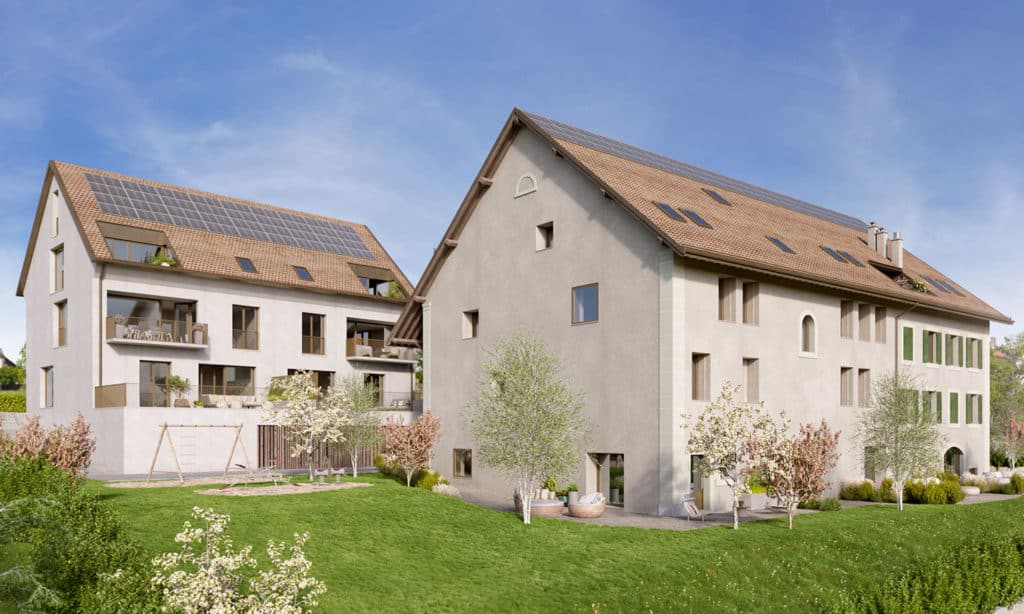Ce projet s’appelle « La Ferme du Tilleul », de par l’arbre éponyme s’y trouvant et offrant un charme indéniable au lieu. Il propose 17 appartements et 2 surfaces commerciales, répartis entre la ferme rénovée, l’ancienne grange et le nouveau bâtiment. Un projet, deux ambiances!