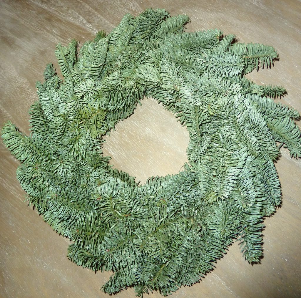 La couronne - Vous avez obtenu, ainsi, la base de la couronne. Assouplissez un peu si celle-ci n’est pas parfaitement ronde et ajoutez de la ficelle en plusieurs points du cercle pour que les branches ne dépassent pas trop.