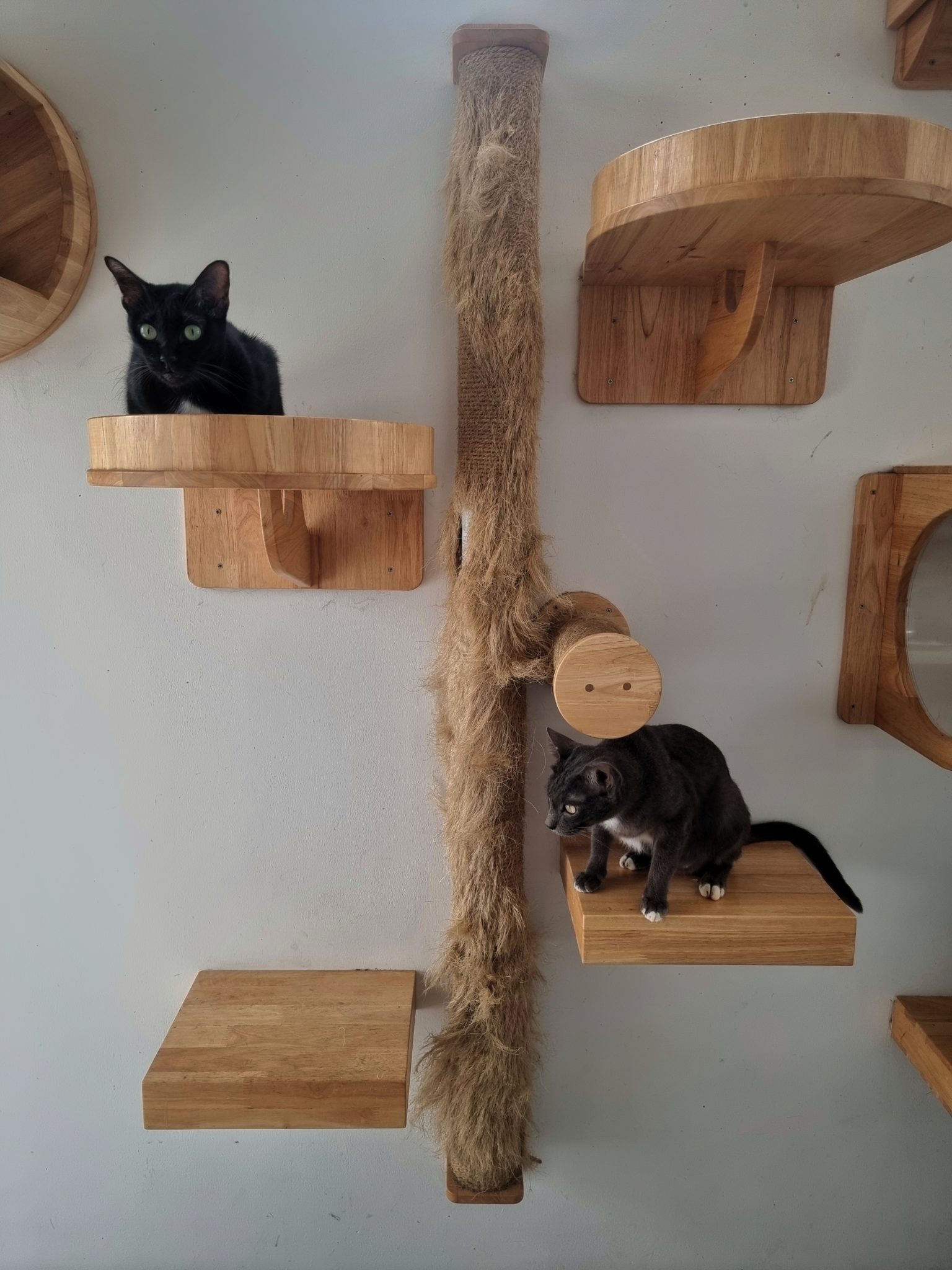 Des coussins légers, facilement lavables et transportables existent aussi bien pour chiens et chats. Mais ces derniers aiment aussi beaucoup dormir en hauteur ou dans des petits recoins cachés. C’est pour cela que les arbres à chats ont autant de succès. Mais, ces derniers prennent vite de la place et ne s’intègrent pas forcément bien à votre décoration.