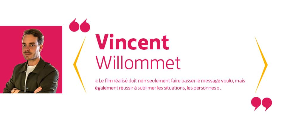 Ainsi, Vincent Willommet nous avouera que, chez Stellar Films, un important travail est réalisé en amont, soit celui de comprendre précisément le besoin du client en abordant une relation transparente et de proximité. Il s’agit de cerner la finalité voulue, le public cible, le ton donné et de prévoir une mise en images au plus près des valeurs de la société cliente.