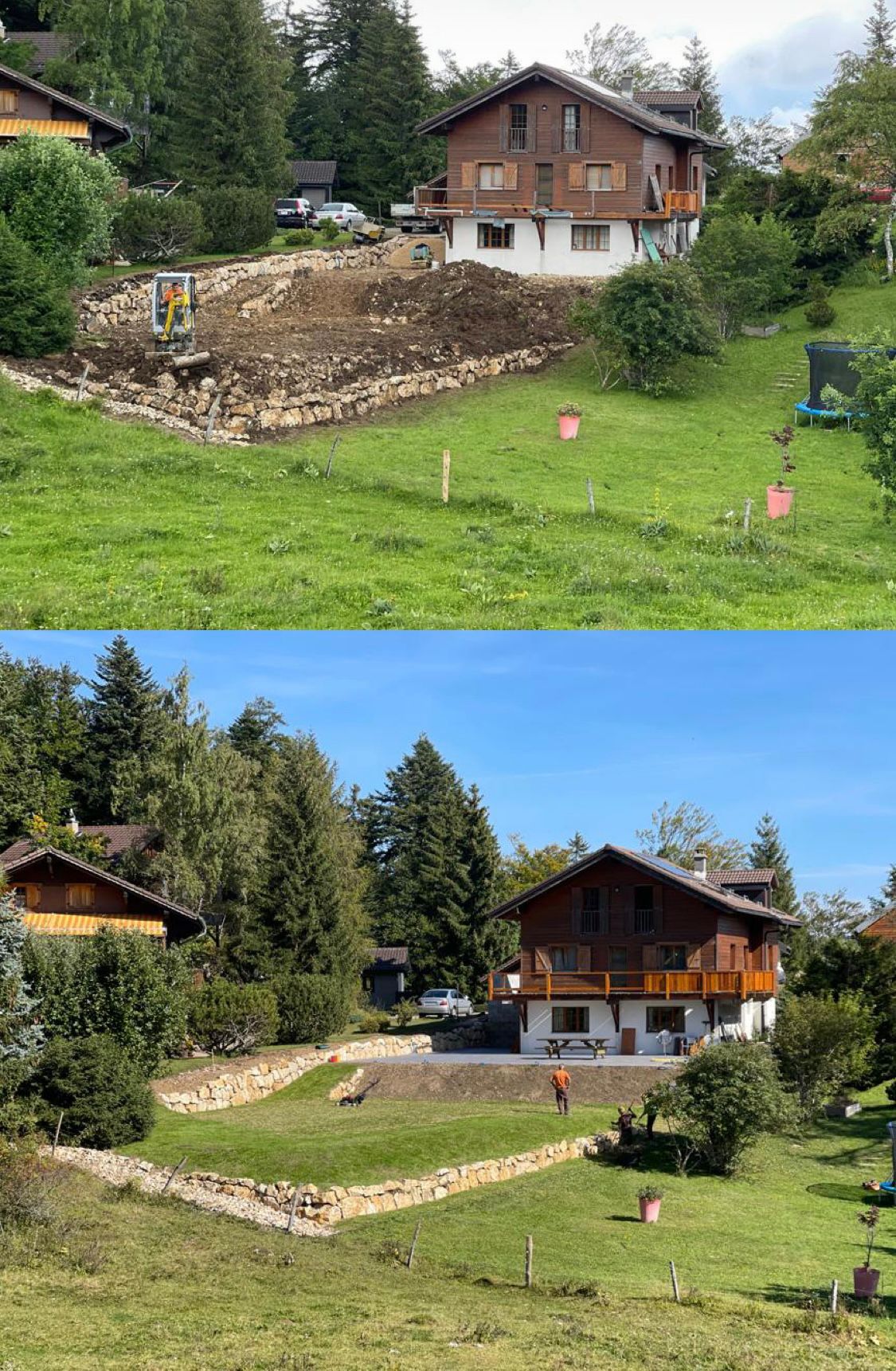Au niveau matériaux, les tendances sont aux lignes et aux surfaces épurées, pierre polie, marbre et autre béton. N’en déplaise à Fahri Rexhaj, dont le dada absolu est… les murs en pierres sèches. « J’adore, c’est vrai. Pour moi chaque pierre doit trouver sa place, pas question d’en laisser une inutilisée. Je vois un peu ça comme un puzzle. » « Il faut le voir faire, avec sa pelleteuse, s’enthousiasme son fils. Il retourne les grosses pierres avant pour trouver le meilleur côté avant de les poser les unes sur les autres. »