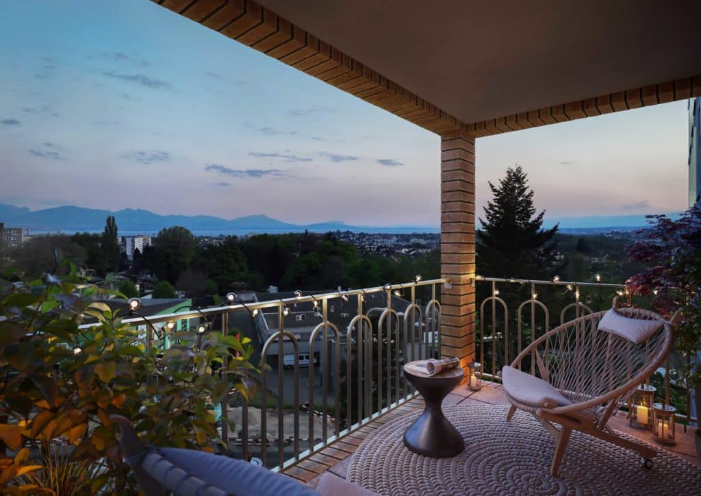 Il faut le dire, L’Orée a bonne mine! Que cela soit au niveau des façades des bâtiments, des aménagements intérieurs ou extérieurs, l’architecture du projet est ambitieuse. Des terrasses de verdure face aux Alpes et au Jura ponctuent le quartier. Le travail des architectes sur l’équilibre entre zones vertes et bâti est minutieux et réussi.