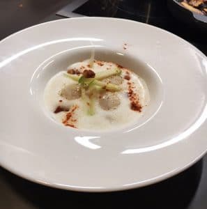 Alors, le petit plus? Nous vous délivrons la délicieuse recette de l’entrée de noix St-Jacques créée par notre hôte! A vos papilles!