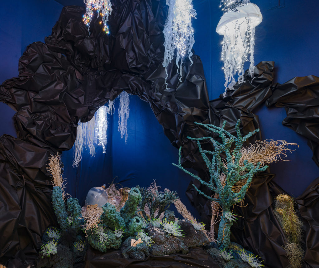 Et on n’a jamais vu une manière plus originale de présenter un large choix de guirlandes lumineuses qu’en les faisant briller… sous forme de méduses flottantes dans une grotte sombre. C’est féérique, magique.