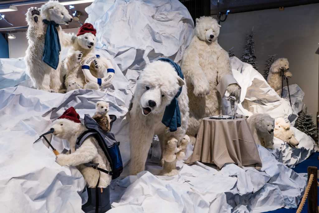 Et c’est le cas cette année: chez Schilliger, en 2021, Noël se fête « aux confins des océans »! De quoi pousser très loin l’imagination de tous les décorateurs et décoratrices ainsi que celle des artisans de l’enseigne, puisque tout est fabriqué par eux, à l’exception de quelques pièces. « Mon père me le répète sans cesse: il faut raconter une histoire. Alors on raconte l’histoire du père Noël qui a décidé de voyager par les mers plutôt que par les airs et qui aurait mis le cap sur l’Antarctique… »
