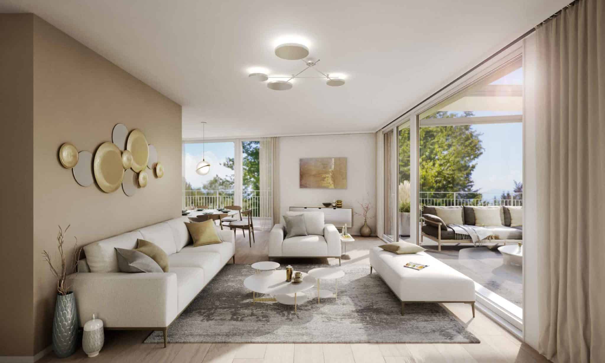 Bénéficiant de la chaleur émise par la lumière naturelle des grandes baies vitrées, les futurs habitants pourront également économiser leur chauffage en hiver. Monsieur Jean-Jacques Müller, courtier chez Cogestim, vous le confirme : cette promotion ne peut pas être mieux au niveau énergétique ! De plus, Rovéréaz 57 est équipé de grands balcons, avec vue sur la verdure et les montagnes. Un grand avantage pour les familles ou les couples qui aiment passer de longues soirées sur leur terrasse à profiter de l’air pur et d’un bon repas !