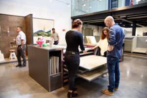 Dans un monde de plus en plus virtuel, difficile de se rendre vraiment compte de la teinte précise d’un bois, du grain d’une dalle, du rendu d’un carrelage ou de l’ergonomie d’une baignoire. Autant de détails qui ont toute leur importance quand on choisit sa salle de bains ou sa cuisine, futurs compagnons d’au moins quinze ans de vie…